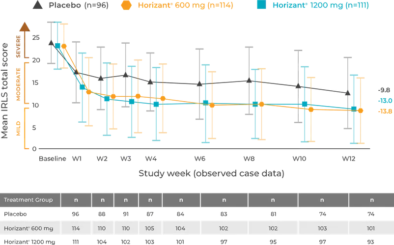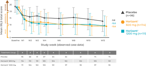 reduction in mean IRLS total score with Horizant® 600 mg vs placebo1,a,b