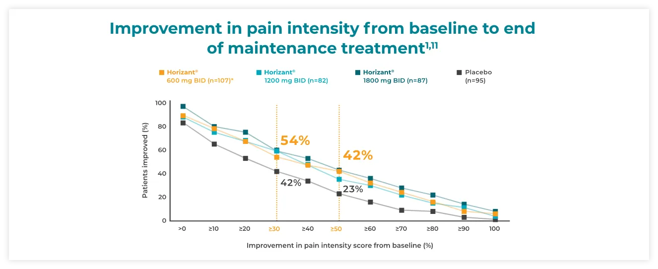 Zhang L, Rainka M, Freeman R, et al. A randomized, double-blind, placebo-controlled trial to assess the efficacy and safety of gabapentin enacarbil in subjects with neuropathic pain associated with postherpetic neuralgia (PXN110748). J Pain. 2013;14(6):590-603.