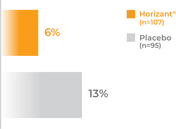 aFrom the Horizant® 600 mg BID study arm of the PHN pivotal trial (n=107). Horizant® 600 mg BID is the approved dose for PHN, and doses >600 mg BID increased side effects without additional therapeutic benefit.